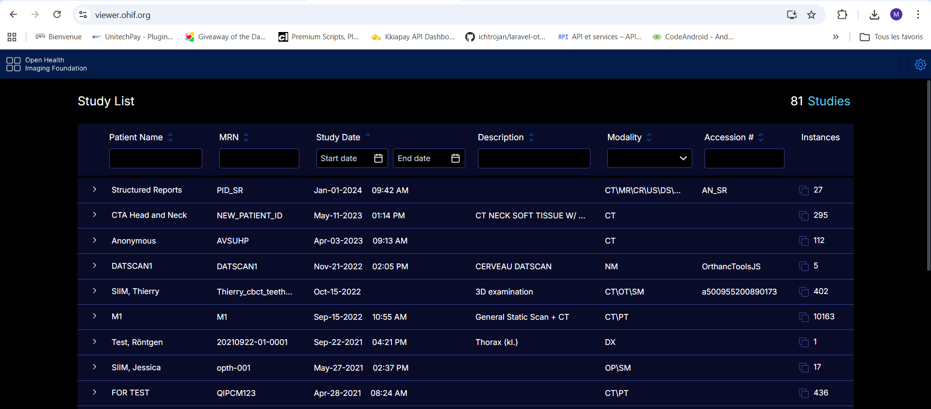 My goal is to do as for OHIF VIEWER by displaying the DICOM data in the Datatable with all the functionalities and the “Viewers / Segmentation / etc…” buttons “OHIF VIEWER” does BUT DESPITE ALL MY EFFORTS THE DATATABLE IS STILL EMPTY IN MY CASE.