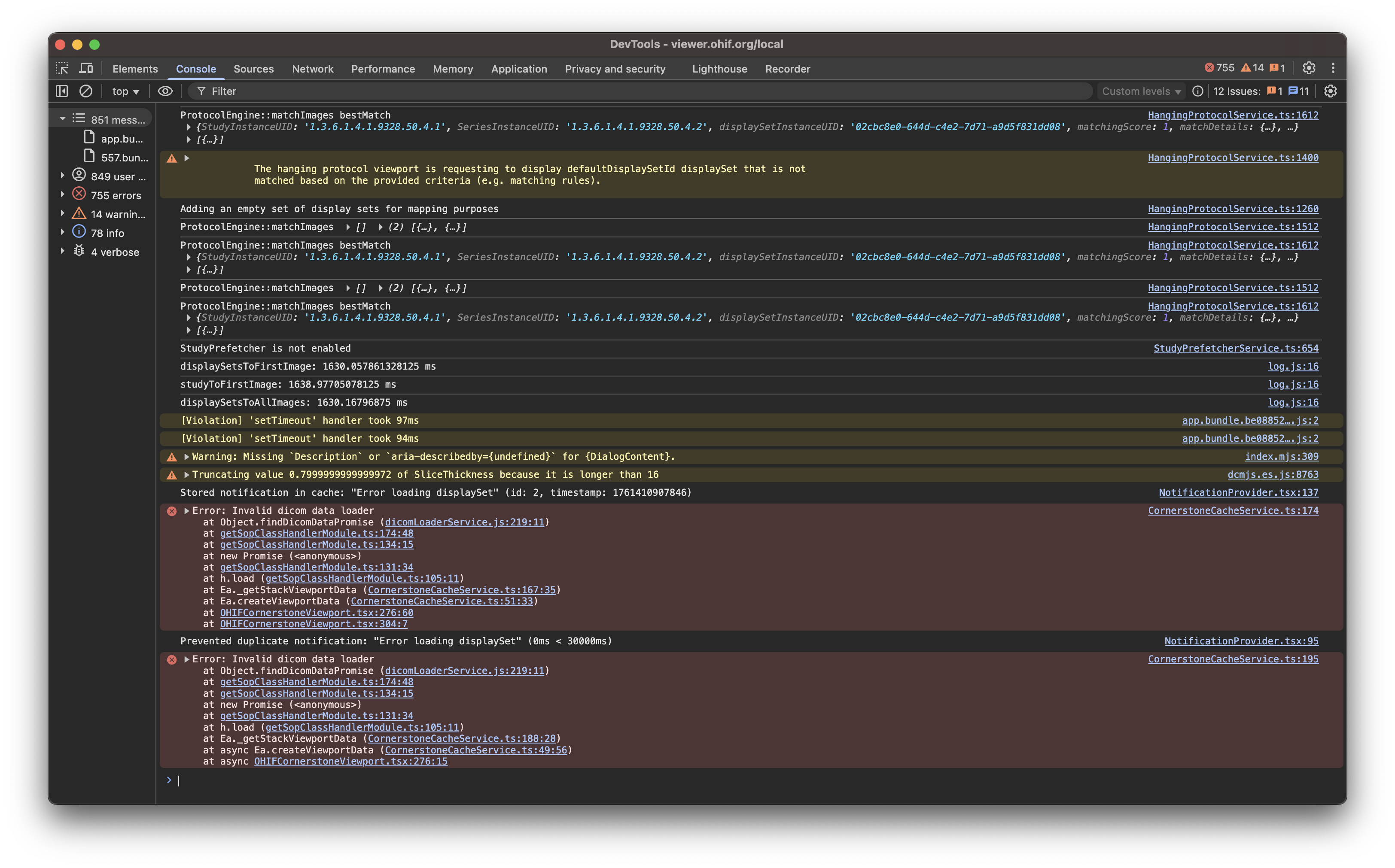 - The segmentation export works fine but OHIF is not able to load it again. I see the report successfully exported message but after that another message pops up saying invalid dicom data loader and the Loading Seg message keeps on spinning. The same also happens when I run a local docker instance of the OHIF v3.11.0 with the help of command